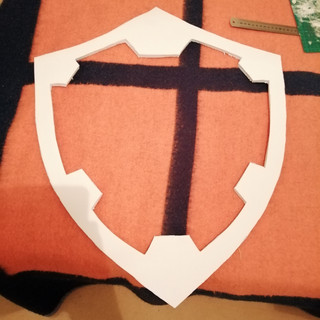 Le bouclier est fait en mousse EVA. Il devait faire 70 cm de haut mais en fera que 67.5